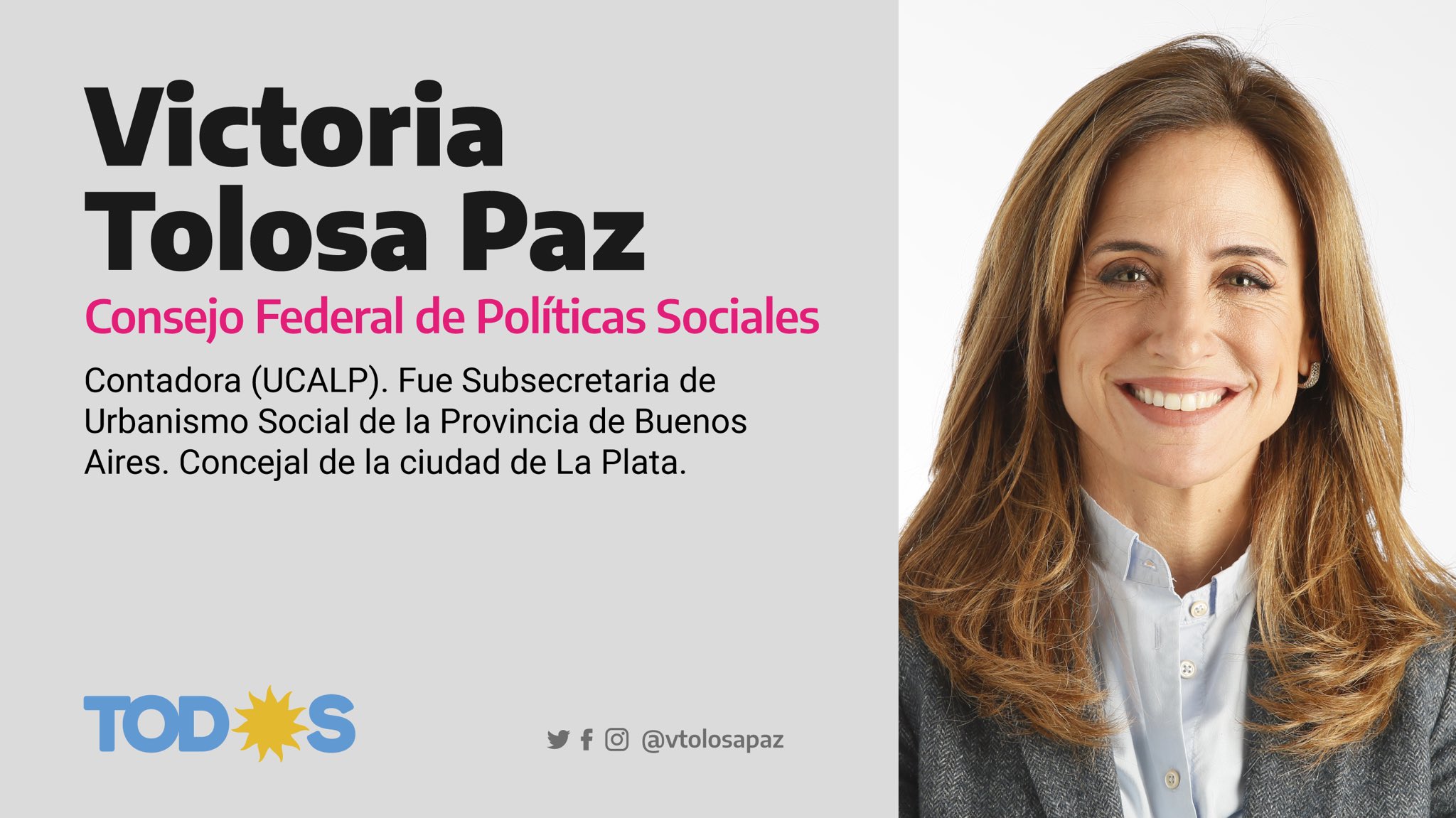 Quién es Victoria Tolosa Paz la funcionaria que tendrá a cargo el plan más ambicioso del Gobierno Es platense y estará al frente del Consejo Federal de Políticas. Lo conoció en Pinamar por intermedio de la prima de él casada con Pont Lezica. Cámbiense de nombre pero expresan lo mismo Hay un entramado social que no aguanta más por eso.